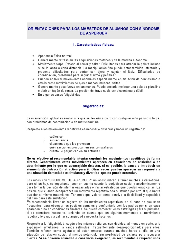 Sindrome De Asperger Estrategias De Intervencion Generales Pdf Descargar Libre . Trastorno Mental Que Forma Parte Del Espectro De Trastornos Autísticos.